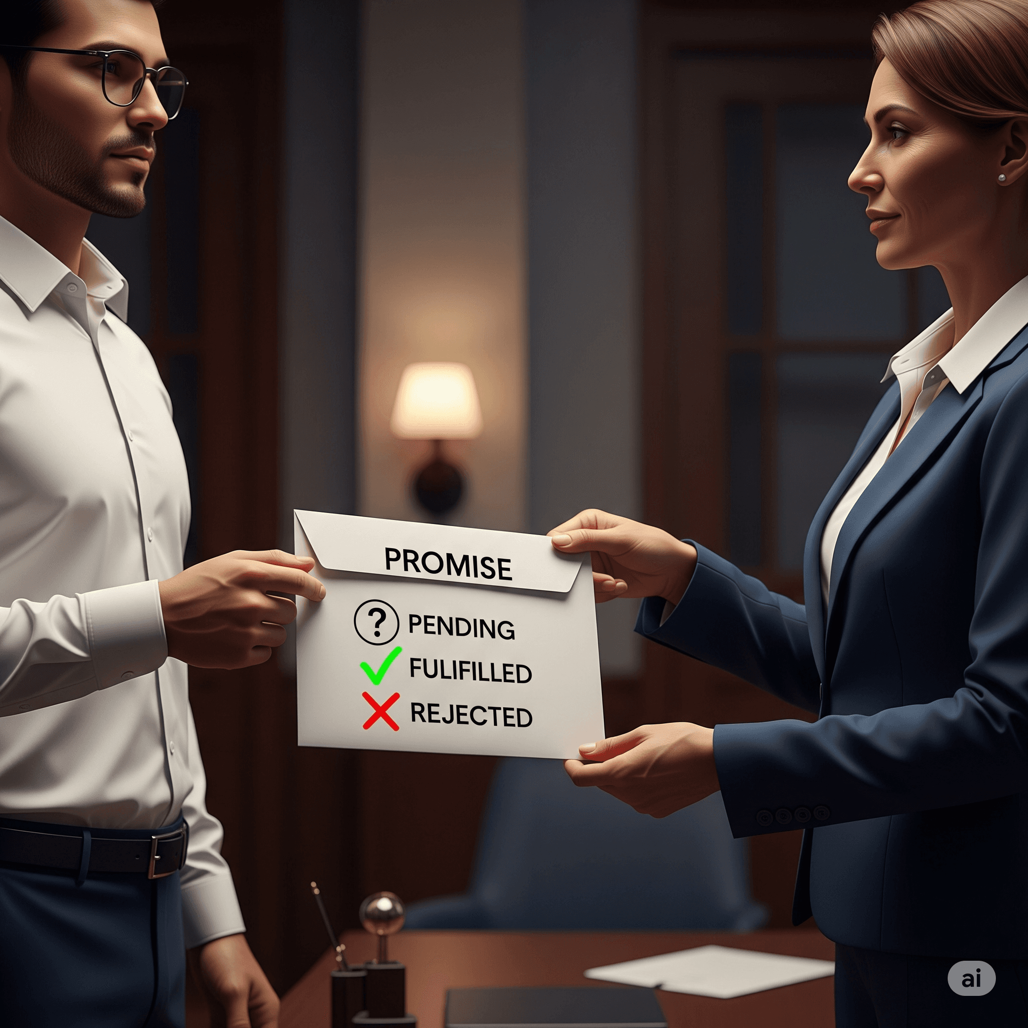 To escape the "Callback Hell," JavaScript introduced Promises. Think of a Promise as a placeholder for a value that is not yet known. It's like placing an order online:
